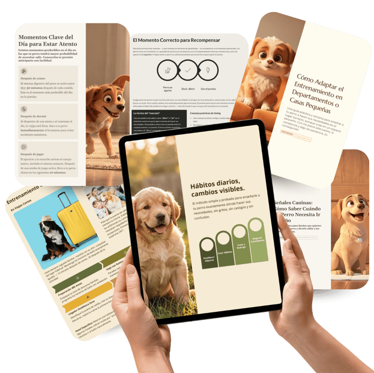 El método simple y probado para enseñarle a tu perro exactamente dónde hacer sus necesidades, sin gritos, sin castigos y sin confusión.